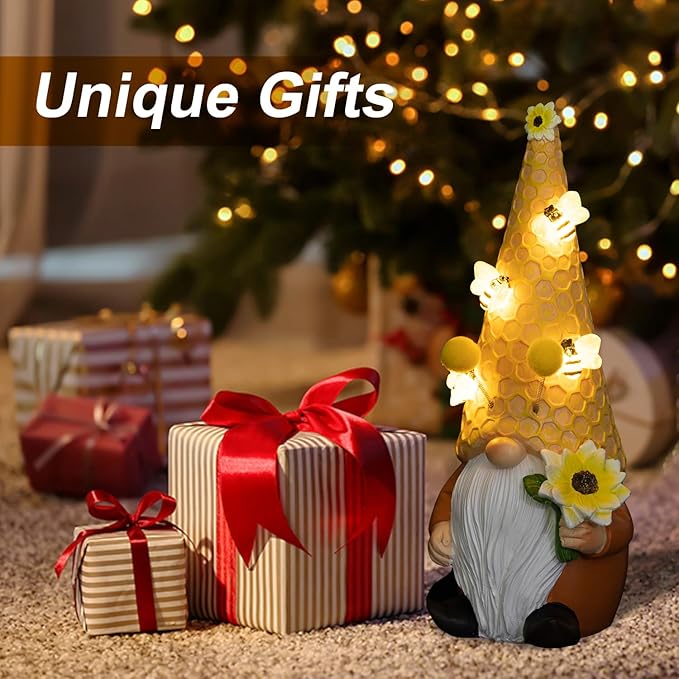 - 【Funny Design】 - Cute bee gnome is smile with sunflower to welcome your guests, and make your family and friends happy with your adorable lawn decorations. It's an ideal gift option for holiday, birthday and all other occasions.