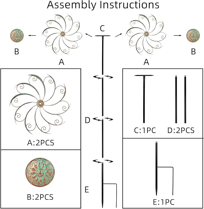 - 【Easy to Install】Wind spinners for yard and garden comes with installation instructions, eliminating the need for other tools, making it easy for you to complete the installation. After assembly, you can easily insert wind spinners into the soil or lawn to enjoy the beautiful scenery.