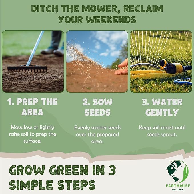 - LOW-MAINTENANCE LAWN: Naturally self-repairing blend that fills in bare spots without frequent reseeding. Requires minimal mowing and no chemical fertilizers thanks to the clover’s nitrogen-fixing properties, keeping your lawn green and healthy with less effort