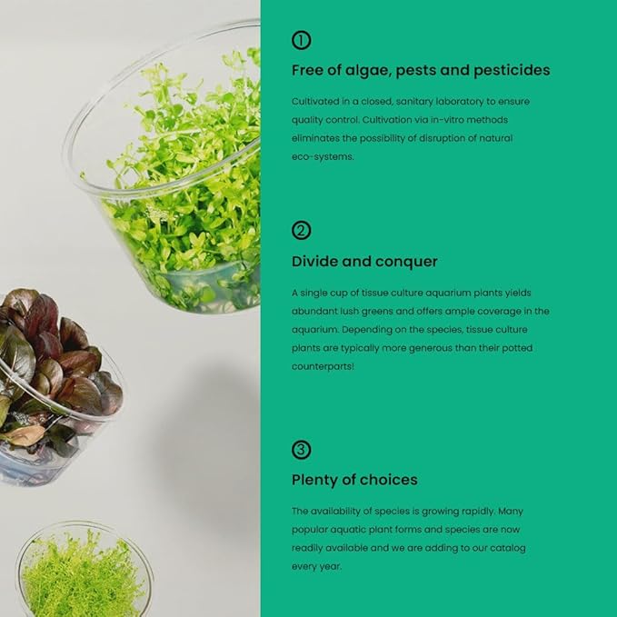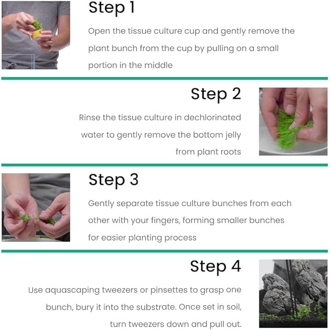 - Ships in a sterile Ultum Nature Systems tissue culture cup—remove gel, divide gently, and plant clumps directly into enriched substrate using tweezers.
